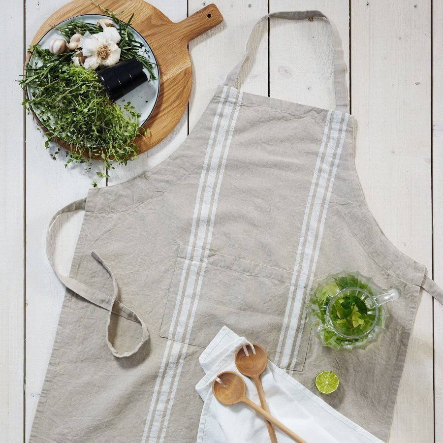 Hieno esiliina puolipellavaa. Suojaa hyvin vaatteita ruoanvalmistuksen aikana ja saa aloittelijankin näyttämään ammattilaiskokilta.
