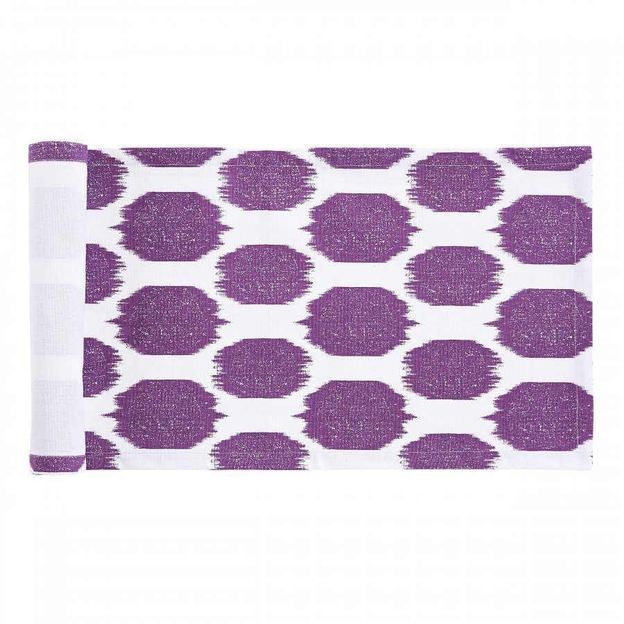 Kaitaliina painetulla ikat-kuviolla. Koristeellinen ja käytännöllinen samalla kun suojaa pöytää. Konepesu 40 asteessa.