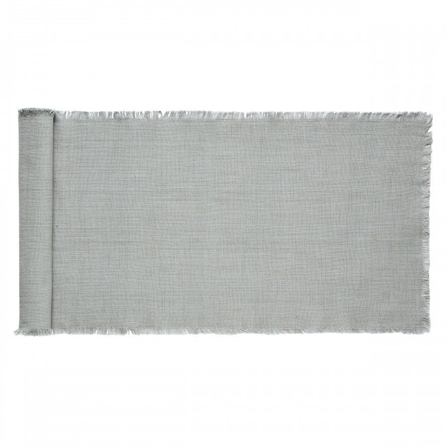 Yksivärinen kaitaliina puuvillaa, hapsureunat. Koristaa ja suojaa pöytää.