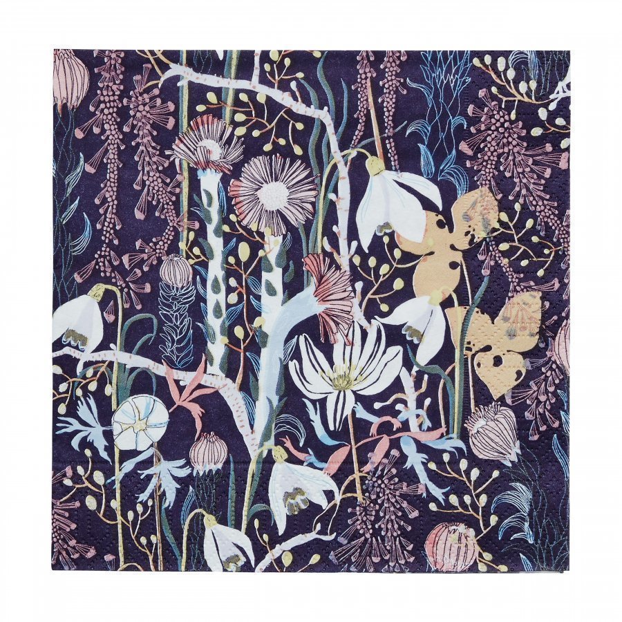 Servetit 3-kerroksisesta paperista, jonka hieno kuosi on Hemtexin ja kuvittajamuotoilija Ulrika Gustafssonin yhteistyössä syntyneestä mallistosta.