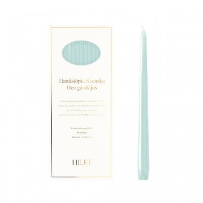 Ruotsalaisen tuotemerkin Hilke Collectionin käsintehdyt kynttilät kauniissa sinisen sävyssä. Kynttilät on valmistettu steariinista ja parafiinista, minkä ansiosta kynttilän liekki on iso ja kirkas. Steariini ei valu, eikä kynttilä savuta. Kynttilät ovat 30 cm pitkiä ja ne palavat noin yhdeksän tuntia. Ne toimitetaan kauniissa lahjapakkauksessa, jossa on kuusi kynttilää. . Huomioi:. Älä jätä kynttilää yksin palamaan. Aseta kynttilä lasten ja eläinten ulottumattomiin. . Älä laita kynttilää vetoisaan paikkaan. Pidä kynttilä kaukana helposti syttyvistä materiaaleista. .