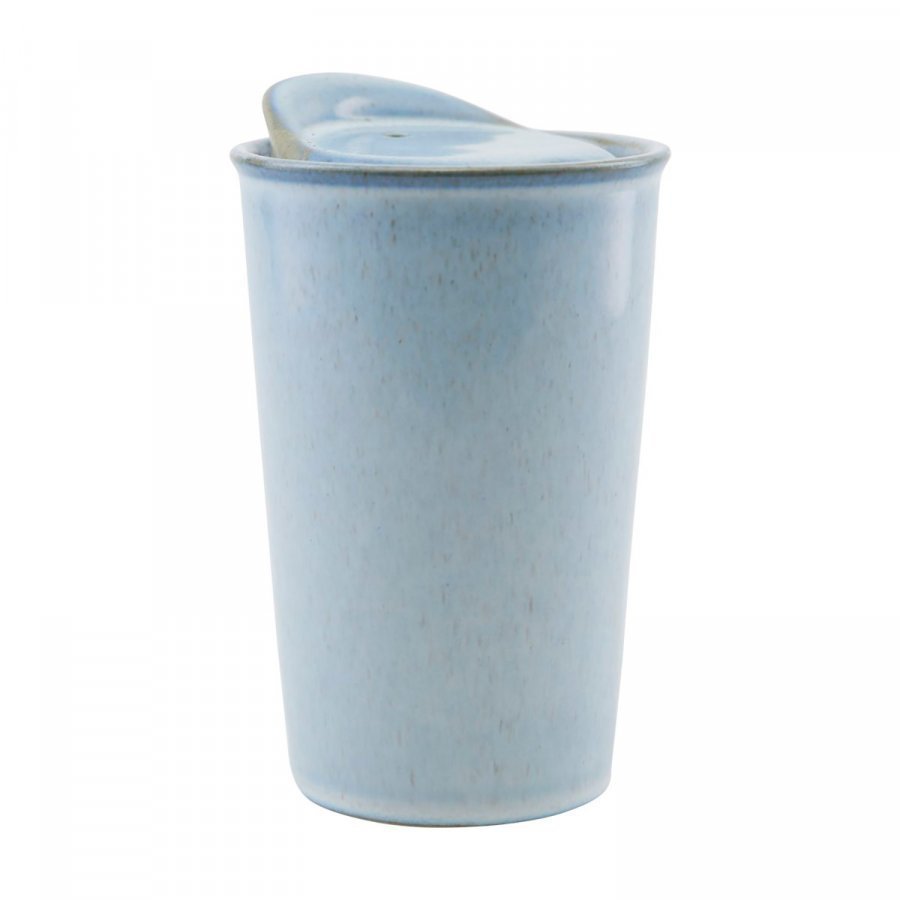 Togo muki merkiltä House Doctor. Tyylikäs muki on valmistettu kivitavarasta ruskealla raidalla mukin reunassa. Mukiin kuuluu myös kansi, joka auttaa pitämään juomasi kuumana pidempään. Käytä mukia arkena ja anna sen pitää tee tai kahvi lämpimänä. Togo-sarjassa on mukeja eri sävyissä, jotta voit löytää sinulle parhaiten sopivan, tämä muki on vaaleansininen sävyinen.