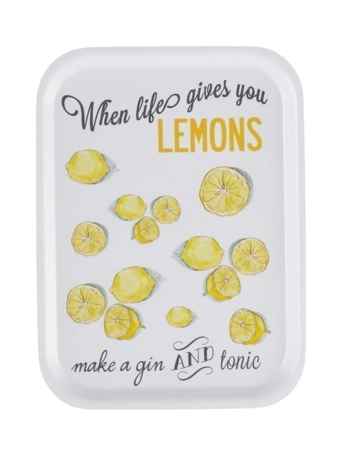 Koivuvanerista valmistetussa tarjottimessa on hauska teksti ja pirteä sitruunainen kuviointi. Erinomainen lahjaidea ginin ystävälle!