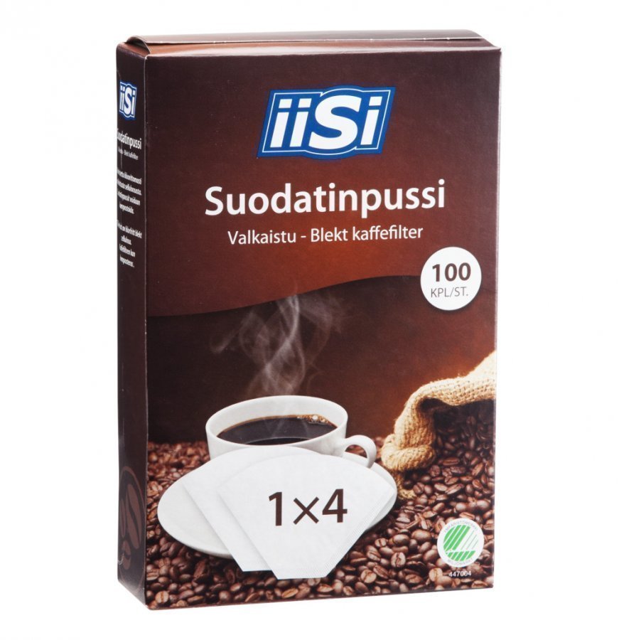 Valkaistu suodatinpussi 1×4. Pakkauksessa 100 kpl. Pussit valmistetaan kloorittomasti valkaistusta selluloosasta. Suodatinpussit voidaan kompostoida.
