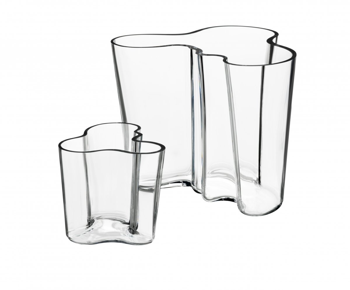 Kaksi kirkasta Alvar Aalto -maljakkoa Iittalalta, joiden korkeudet 16 cm ja 9,5 cm. Suupuhalletusta lasista valmistetut maljakot on joka kodin klassikkoja, jotka on suunnitellut Alvar Aalto vuonna 1936. Maljakoista on vuosien mittaan tullut Iittalan ikoni, joka edustaa modernia pohjoismaista tyyliä. Maljakkoja löytyy valikoimasta monen eri värisenä ja kokoisena ja se on loistava lahjaidea.