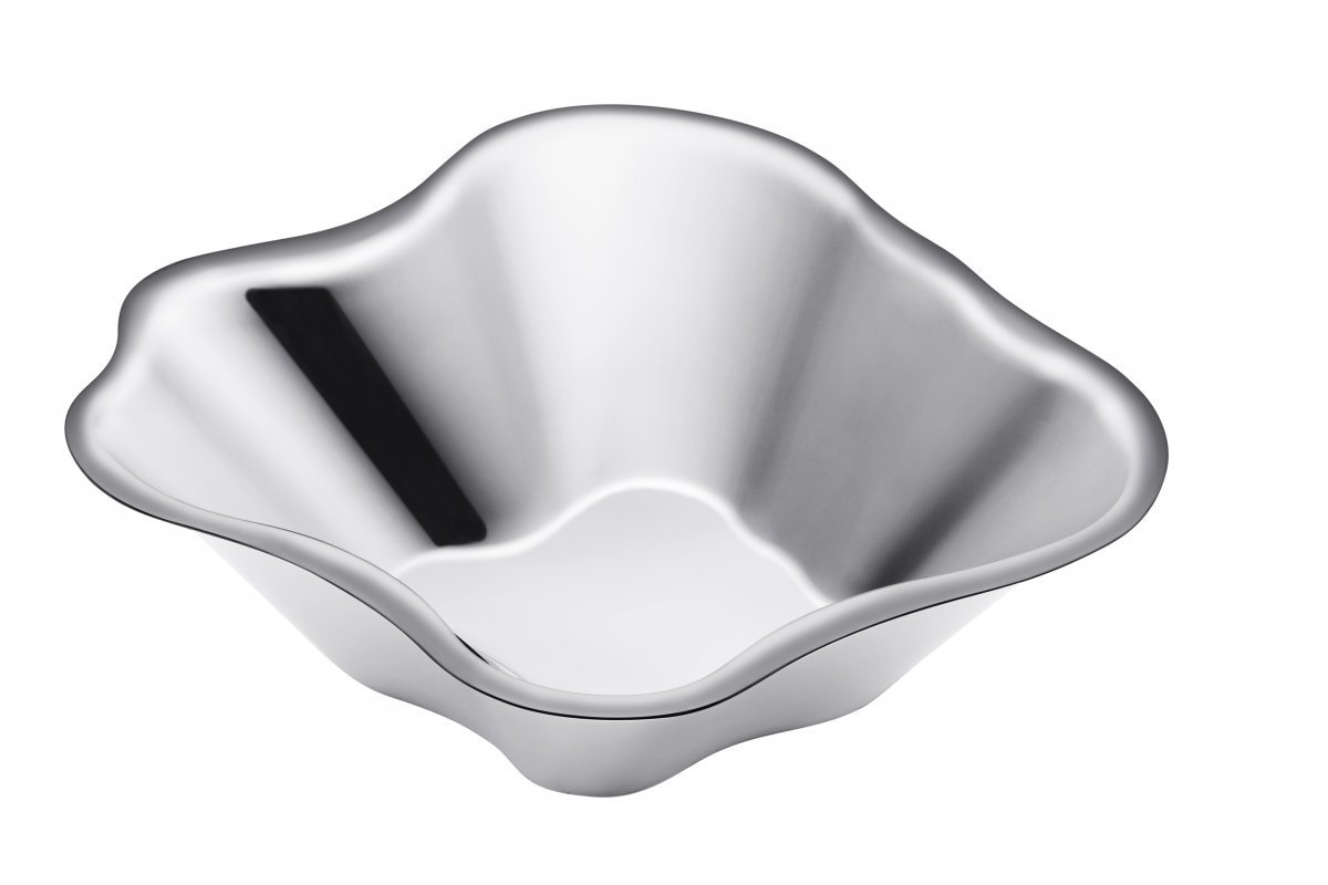 Alvar Aalto suunnitteli kuuluisan kokoelmansa vapaasti puhallettuja lasiesineitä vuonna 1936. Yhä tänäkin päivänä Iittalan puhaltajamestarit luovat käsityönä legendaarisia maljakoita. Aalto-kokoelmaa täydentävät uusista materiaaleista valmistetut, mutta aina alkuperäiselle muodolle uskolliset tulkinnat. Pentagon Design on yhdistänyt Aallon klassisen muodon tyylikkääseen teräkseen. Ruostumattomasta teräksestä valmistettu Aalto teräskulho sopii kaikenlaisiin kattauksiin sekä tarjoiluun.