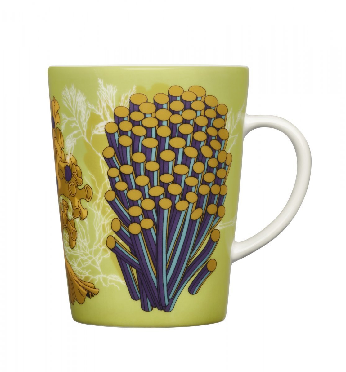 Värikkään kuvioinnin on suunnitellut Ugo Gattoni Ranskasta. “Halusin muotoiluni tuntuvan taianomaiselta, joten loin surrealistisen, leijuvan sommitelman vesikasveja. Unenomainen asetelma näyttää samaan aikaan sekä eloisalta että herkältä.” Muki on pakattu yhteensopivaan lahjarasiaan.