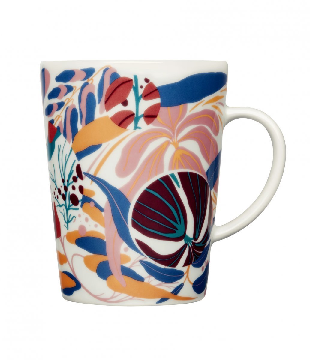 Värikkään kuvioinnin on suunnitellut hollantilainen Merijin Hos. “Tutkin tätä työtä varten vääristymisen käsitettä. Halusin lähestyä aihetta uudesta näkökulmasta, koska erilaisten näkökulmien hakeminen on mielestäni ominaista pohjoismaiselle elämäntavalle ja muotoilulle.” Muki on pakattu yhteensopivaan lahjarasiaan.
