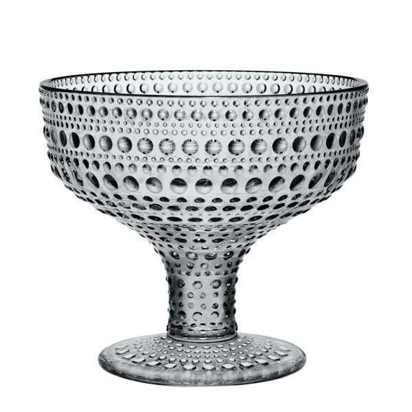 Iittalan Kastehelmi-sarjan kauniin helmeilevällä pinnalla on paitsi esteettinen myös tekninen funktio. Oiva Toikka halusi peittää puristelasiin jäävät saumakohdat ja kehitti vuonna 1964 uudenlaisen pintastruktuurin. Valolla leikittelevästä Kastehelmestä tuli yksi Toikan pidetyimmistä sarjoista, ja sitä valmistettiin aina vuoteen 1988 saakka. Suosituimmat osat on otettu uudestaan Iittalan tuotantoon vuonna 2010.