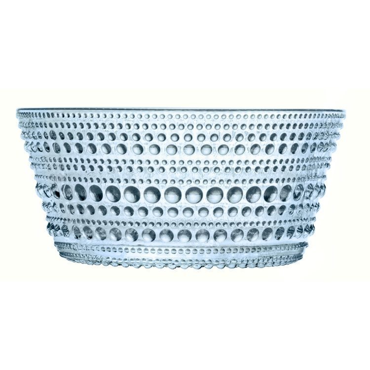 Kastehelmi kulho on suunnitellut Oiva Toikka. Lasisarja suunniteltiin 1964 ja inspiraatio sarjaan saatiin aamukasteen helmistä. Lasisarja on edelleen raikas ja ajankohtainen.