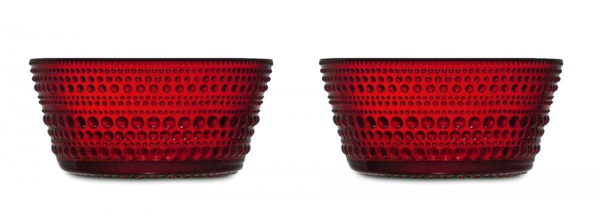Iittala Kastehelmi -kulhot, 2 kpl. Piisarakuvioinnin design: Oiva Toikka. Väri: karpalo. Ostoksille!