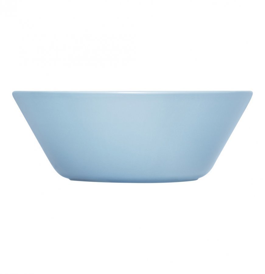 Iittalan Teema-sarjan kulho on astianpesukoneen, uunin, mikron sekä pakkasen kestävää vitroposliinia. Syvän kulhon halkaisija on 15 cm. Väri vaaleansininen.