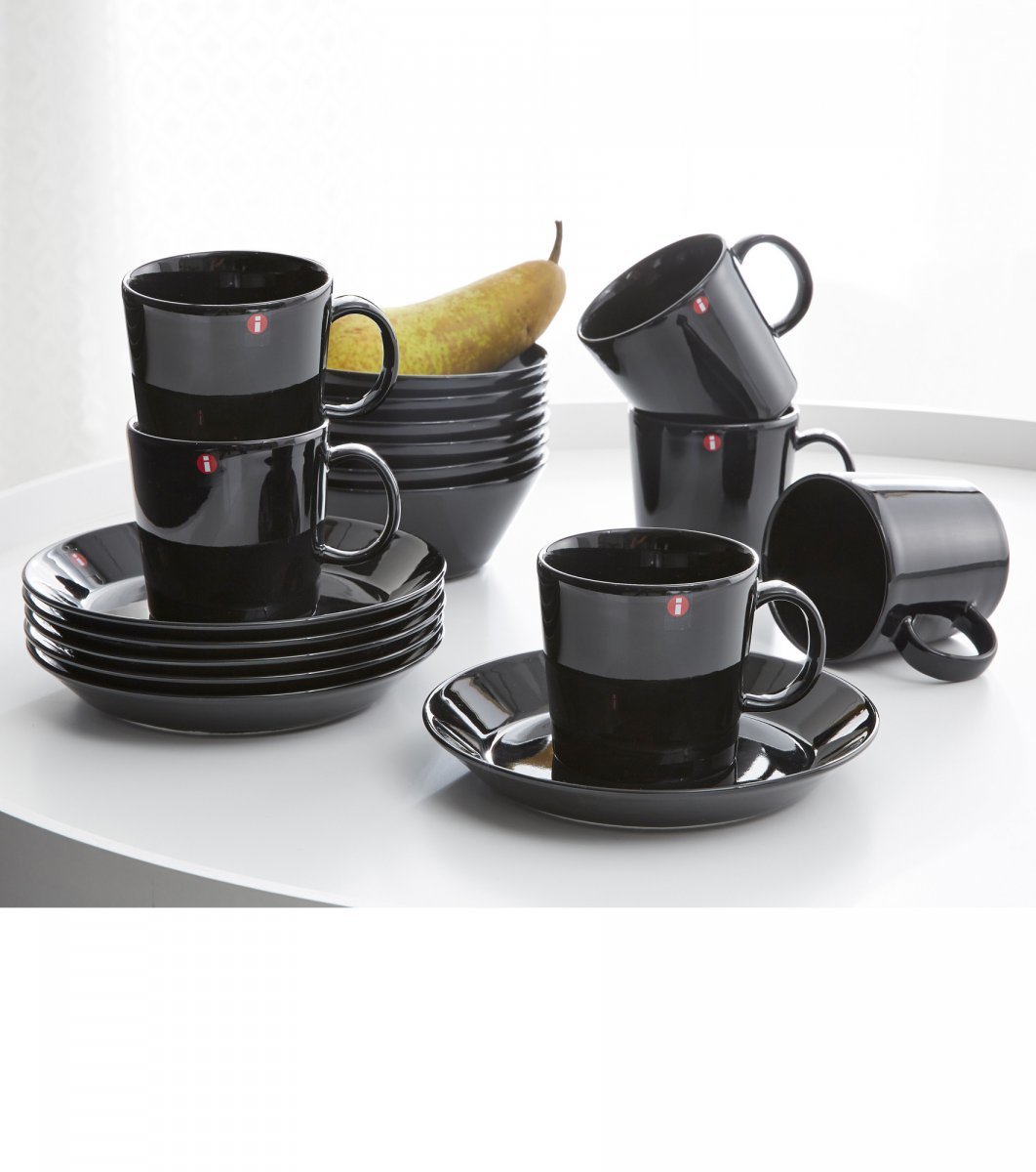 Iittala Teema -mukit 6 kappaleen pakkauksessa. Uunin, mikron, pakkasen ja konepesun kestävää vitroposliinia. Design Kaj Franck. Musta. Ostoksille!