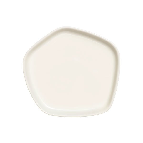 Iittala X Issey Miyake -kokoelman ihastuttava lautanen sopii etenkin lisukkeiden, soijakastikkeen sekä pienten leivosten ja makeisten tarjoiluun. Sen päälle voi asettaa myös teepallon tai jonkin saman sarjan kupeista. Lautanen on valmistettu lasitetusta vitroposliinista, ja sen koko on 11 cm x 11 cm. Kokoelman keramiikka- ja lasiesineet tunnistaa paitsi niiden pelkistetystä muotokielestä, myös viisikulmaisesta pohjasta: orgaaninen, epätavallinen muoto sopii juhlistamaan pieniä arjen hetkiä. Kuppien, vatien, lautasten ja kynttilälyhdyn miellyttävä väripaletti koostuu vaaleanpunaisesta, luonnonvalkoisesta ja tummanvihreästä lasitesävystä, jotka on suunniteltu erityisesti tätä kokoelmaa varten. Kirkkaat ja harmaat lasimaljakot taas tuovat kattaukseen kaunista kuulautta. Osia voi yhdistellä vapaasti, sillä ne sopivat saumattomasti yhteen. Iittala X Issey Miyake -kokoelma luo kotiin harmoniaa ja kutsuu rauhoittumaan.