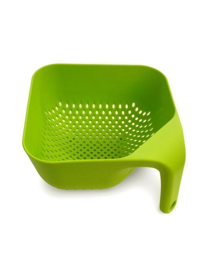 Kätevä neliönmuotoinen lävikkö mahtuu ahtaaseenkin kaappiin. Neliönmuotoisesta astiasta on myös helpompi kaataa siivilöity ruoka tarjoiluastiaan. Lävikössä on kädensija, joka toisaalta pitää lävikköä pystyssä siivilöinnin aikana ja toisaalta pitää toisen käden vapaana kaataessa. Suuret reiät valuttavat veden nopeasti. Lävikkö on konepesunkestävää muovia.