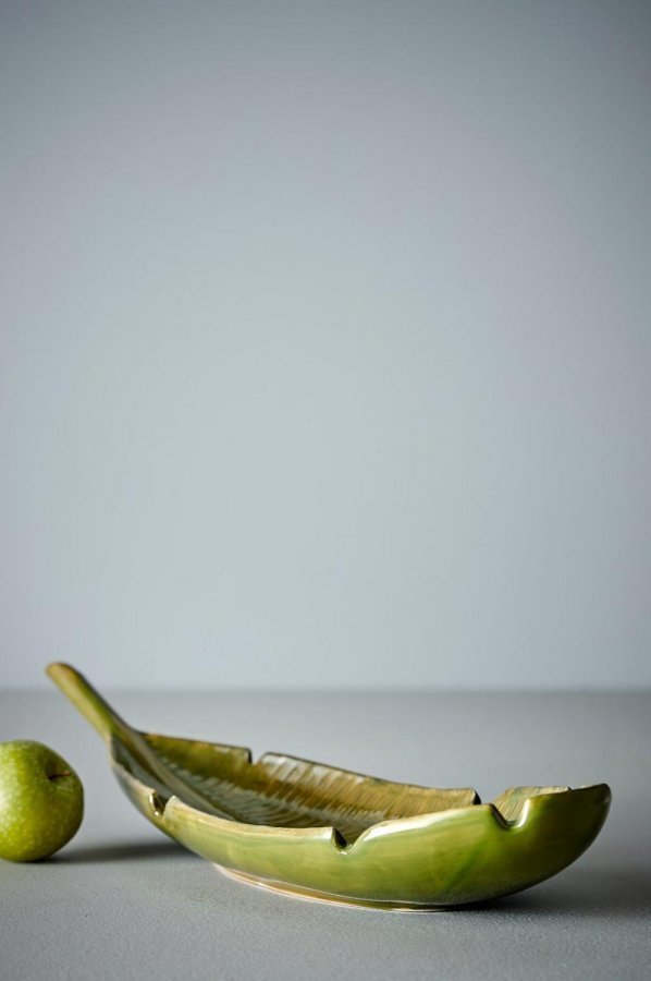 Aseta hedelmiä esille näyttävästi tai tarjoile jälkiruoka erilaisesta vadista. Tai käytä vatia sellaisenaan sohvapöydällä. LEAF on kaunis vati, joka muistuttaa banaaninlehteä. Materiaali: Dolomiittiposliinia. Koko: Korkeus 9 cm, pituus 45 cm, leveys 15 cm. Kuvaus: Lehdenmuotoinen vati dolomiittiposliinia. Sopii ruokien tarjoiluun. Vinkki: Luo jännittävä kokovihreä kattaus. Meiltä löydät pöytäliinoja, astioita ja muita tuotteita kauniissa vihreän sävyissä.