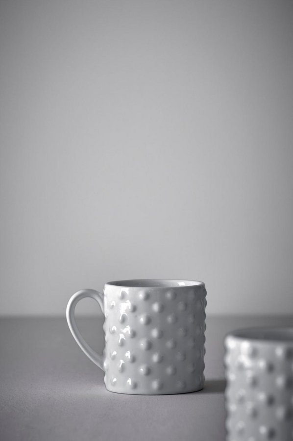 Muki lasitettua käsintehtyä keramiikkaa, jossa kuplapinta. Yhtä aikaa koristeellinen ja käytännöllinen. Materiaali: Keramiikkaa. Koko: Korkeus 9 cm, ø 8 cm. Kuvaus: Muki lasitettua käsintehtyä keramiikkaa, jossa kuplapinta ulkopuolella. Hoito-ohje: Kestää mikroaaltouunin ja konepesun. Vinkki: PORTO-sarjan klassinen tyyli sopii sekä yksivärisiin että kuviollisiin tekstiileihin.