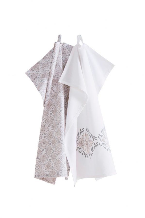 2 keittiöpyyhettä puuvillaa, jossa painettu kuvio. Erilaiset kuviot. Materiaali: 100% puuvillaa. Koko: 50×70 cm. Hoito-ohje: Pesu 40°. Kutistuu enintään 5%.