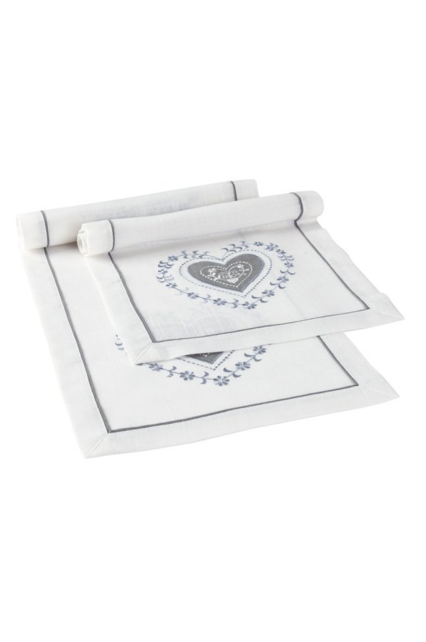 Kirjailtu kuvio. 15% pellavaa, 85% polyesteriä. Pesu 30°. Kutistuu enintään 3%. Koko 33×90 cm.