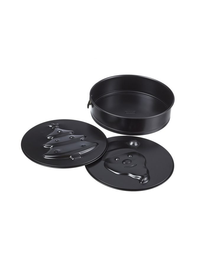 Jouluisella irtopohjavuoalla tarjoilet tunnelmallisimmat jouluherkut! Irtopohjavuoassa on kolme erilaista irrotettavaa pohjaa: joulukuusi, joulupukki sekä sileä. Vuoan laadukas tarttumaton pinnoite mahdollistaa leinovonnaisten helpon irrottamisen ja vuoan puhdistaminen on vaivatonta. Voideltava vuoka kestää enintään 250 °C asteen uunilämmön.