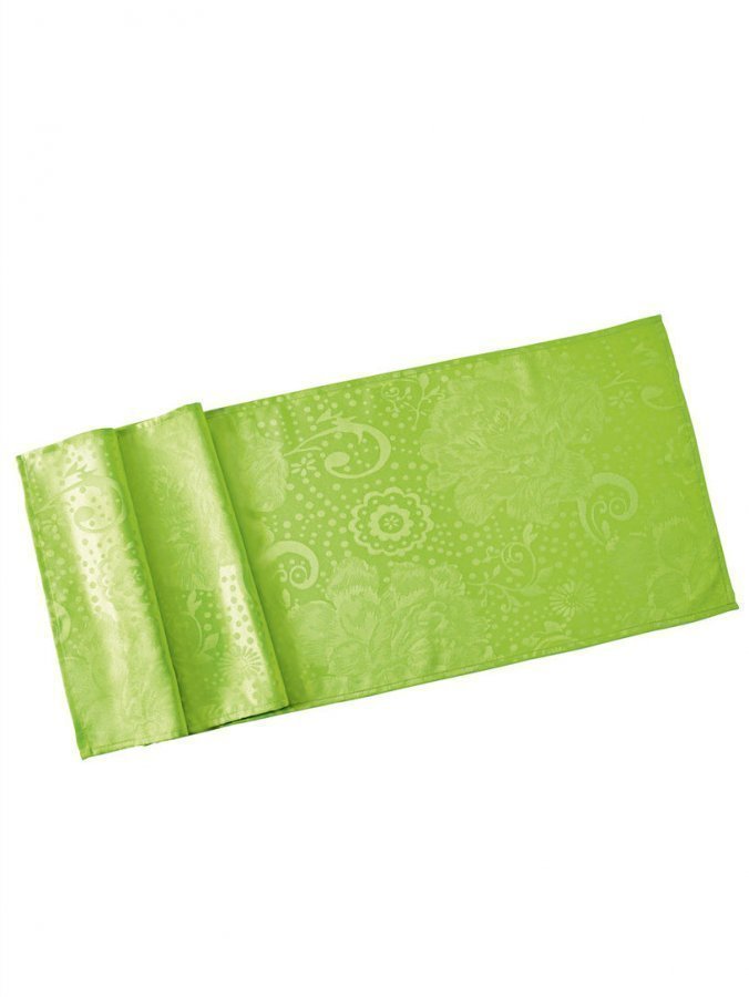 Kaunis, jakardikuvioitu kaitaliina. Raikas omenanvihreä sävy. Materiaali 100% polyesteriä. Mitat n. 40 x 140 cm.