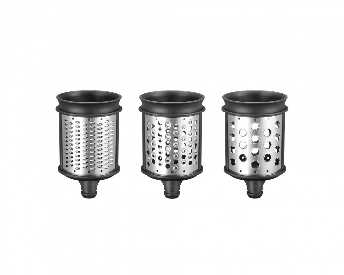 Rummut sopivat KitchenAidi -yleiskoneiden vihannesleikkuriin. Rummut tulevat kolmessa variantissa: . Hienojakoinen raastorumpu kovien juustojen, pähkinöiden ja suklaan raastamiseen. Raastorumpu perunoiden ja pehmeiden juustojen raastamiseen. . Raastorumpu juuresten ja vihannesten suikalointiin. .