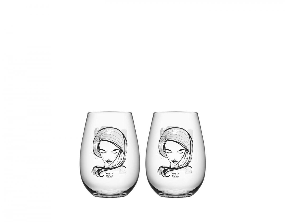 Kaksi kristallilasista valmistettua juomalasia ”Need You” -tekstillä Kosta Bodalta. Tuo piristystä arki- tai juhlakattaukseen Sara Woodrown suunnittelemilla laseilla.
