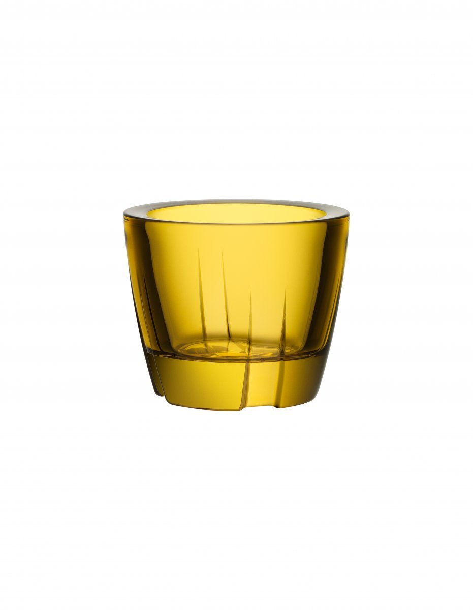 Keltainen kynttilälyhty, jonka korkeus on 6 cm. Kynttilälyhdyn on suunnitellut Anna Ehrner ja se on suunniteltu valaisemaan illalla ja säikehtimään päivällä. Valikoimasta löytyy monen eri värisiä lyhtyjä, joita on helppo yhdistellä oman maun mukaan.