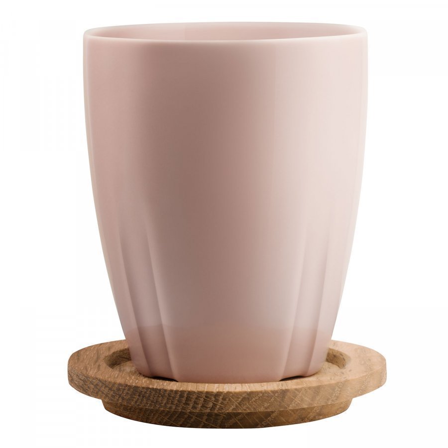 2-pakkaus mukeja yhteensopivissa ja raikkaissa väreissä. Posliinia, lautanen puuta.