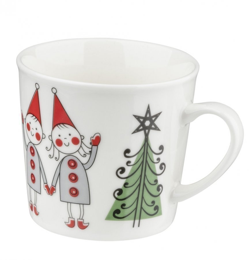 Jouluinen posliinimuki. Kestää mikron ja astianpesukoneen. Korkeus 7,8 cm.