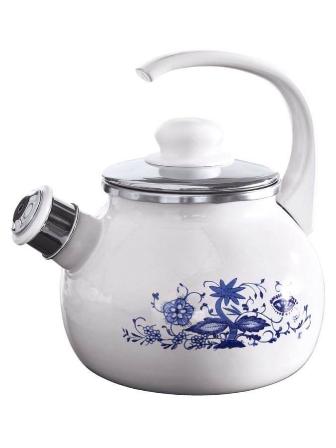 Kestävä emaloitu vesipannu, jossa on nostalginen sipulikuviointi. Sopii kaikille liesityypeille, myös induktioliedelle. Vihellysääni kertoo, kun vesi kiehuu. Korkeus n. 18 cm, tilavuus 2 litraa. Ei saa pestä astianpesukoneessa.