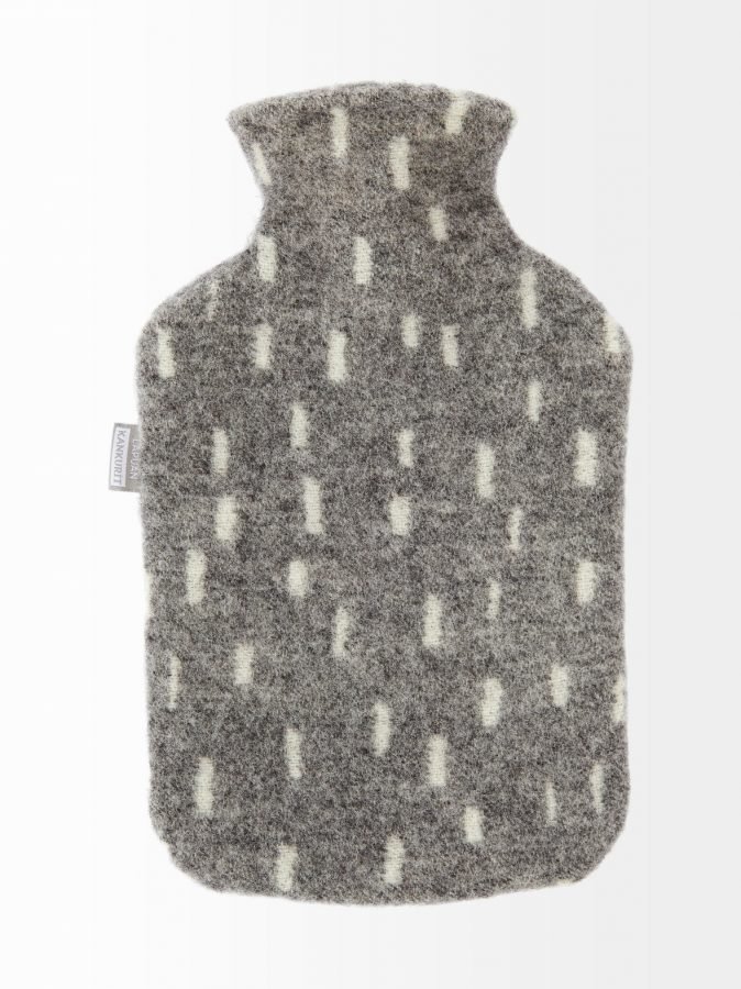 Kuumavesipullo sopii moneen tarkoitukseen, kuten lämmittimeksi kylmille jaloille, sänkyyn tai mökille. Rentouttaa myös jännittyneitä lihaksia ja lievittää lihas- ym kipuja. Tilavuus 2 litraa. Materiaali on 100 % villaa.