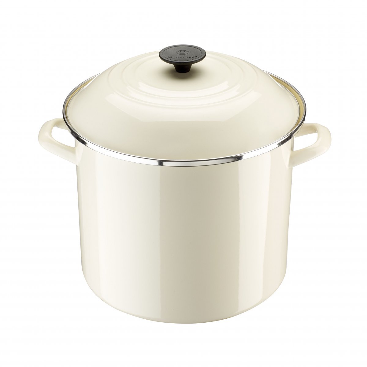 Le Creusetin 15,2 litrainen kermanvärinen kattila, joka on valmistettu ruostumattomasta ja vahvasta teräksestä emaloidulla sisäpinnalla. Pitkäikäinen kattila on kulutusta kestävä ja helppo pitää puhtaana, Lämpö jakautuu tasaisesti koko kattilalle ja se sopii mainiosti suuren luokan ruoanlaittoon. Teräskattila on uuninkestävä aina 220 asteeseen saakka. Sopii induktioliedelle.