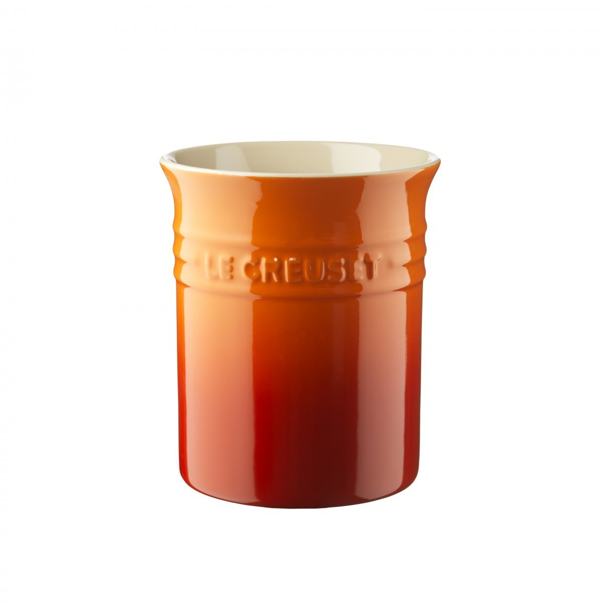Le Creusetin ruukku aterimille ja keittiövälineille on 1,1 litrainen ja 15 cm korkea. Ruukku on valmistettu emaloidusta savesta ja ajattomasti muotoiltu ruukku on väripilkku keittiöön jossa aterimen ja välineet säilyvät siististi. Ruukku on saatavilla useassa värivaihtoehdossa ja sopii hyvin yhteen muoden Le Creusetin tuotteiden kanssa.