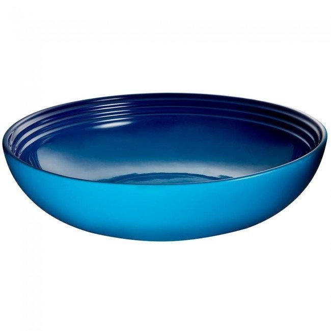 Le Creuset-merkin iso, kauniin sininen tarjoilukulho on osa Signature-sarjaa. Kulho on täydellinen valinta isommille seurueille salaatin tai pastan tarjoiluun. Tarjoilukulhossa on Le Creusetin tunnusomaiset piirteet kolmen renkaan, tyylikkään muotoilun sekä leveän, käytännöllisen reunan muodossa. Keraaminen tarjoilukulho on saatavilla useissa eri väreissä ja niitä voi yhdistellä kauniin kattauksen luomiseksi. Tiskikoneen, uunin, pakkasen ja mikroaaltouunin kestävä.