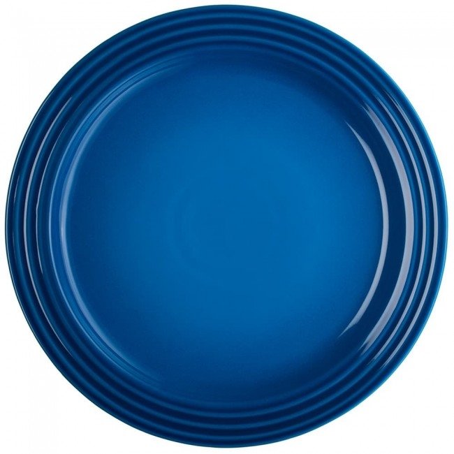 Le Creuset-merkin tumman sininen lautanen on osa Signature-sarjaa. Lautanen on täydellisen kokoinen niin arkeen kuin juhlaankin, ja siinä on Le Creusetin tunnusomaiset piirteet kolmen renkaan, tyylikkään muotoilun sekä leveän, käytännöllisen reunan muodossa. Nämä tyylikkäät keramiikkalautaset on saatavilla useissa eri väreissä ja niitä voi yhdistellä kauniin kattauksen luomiseksi. Tiskikoneen ja mikroaaltouunin kestävä.