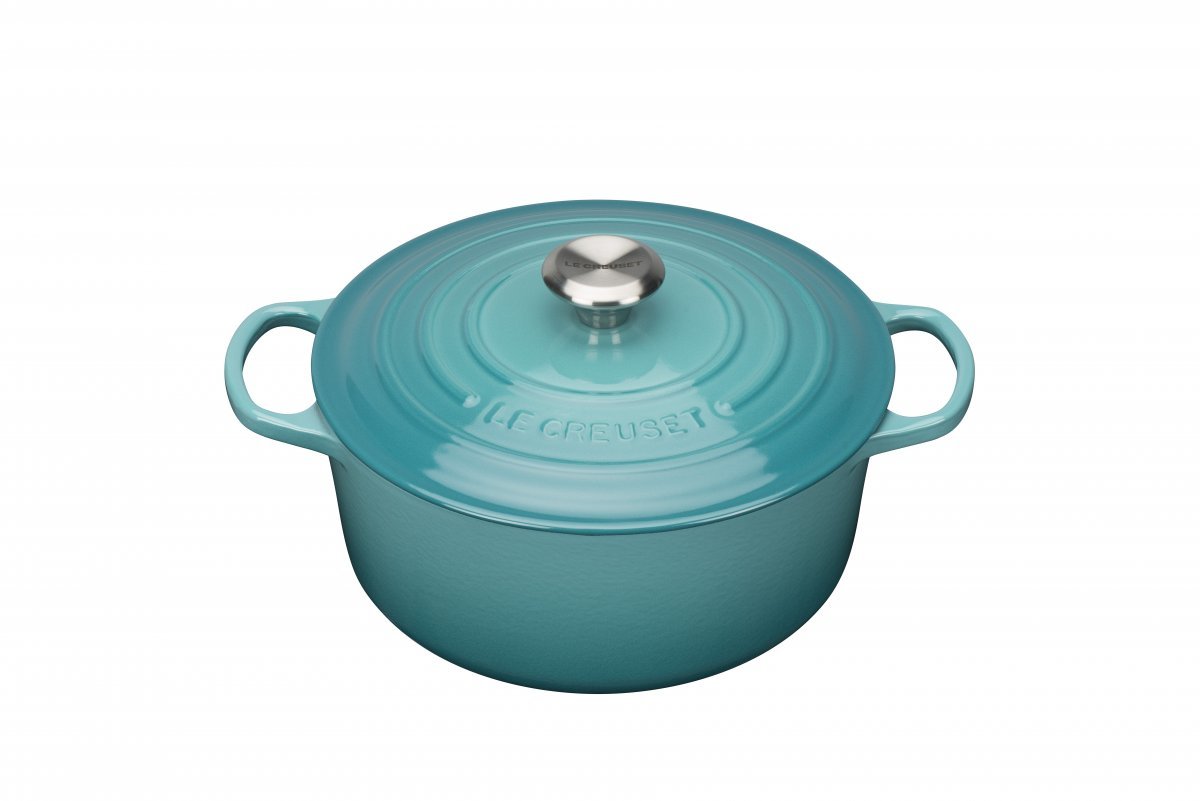 Le Creusetin 5,3 litrainen turkoosi valurautainen pata, halkaisijaltaan 26 cm. Pata on osa Signature –sarjaa joka koostuu päivitetyistä valurautaisista tuotteista. Kädensijat ovat nyt suuremmat paremmalla otteella ja padan nuppi on tyylikäs ja teräksinen. Kansi on entistäkin tiiviimpi ja kestävämpi ja sen sisäpuolen emaloitu pinta on helppo pitää puhtaana. Valurauta on materiaalina lyömätön ja jakaa lämmön tasaisesti, pata sopiikin erinomaisesti haudutukseen ja keittojen sekä patojen laittamiseen. Padan voi nostaa suoraan liedeltä pöydälle, ruoka pysyy lämpimänä pitkään. Ajattomasti muotoiltu laadukas pata elinikäisellä takuulla on saatavilla eri värivaihtoehdoissa ja teräksisen nupin voi vaihtaa uuteen.