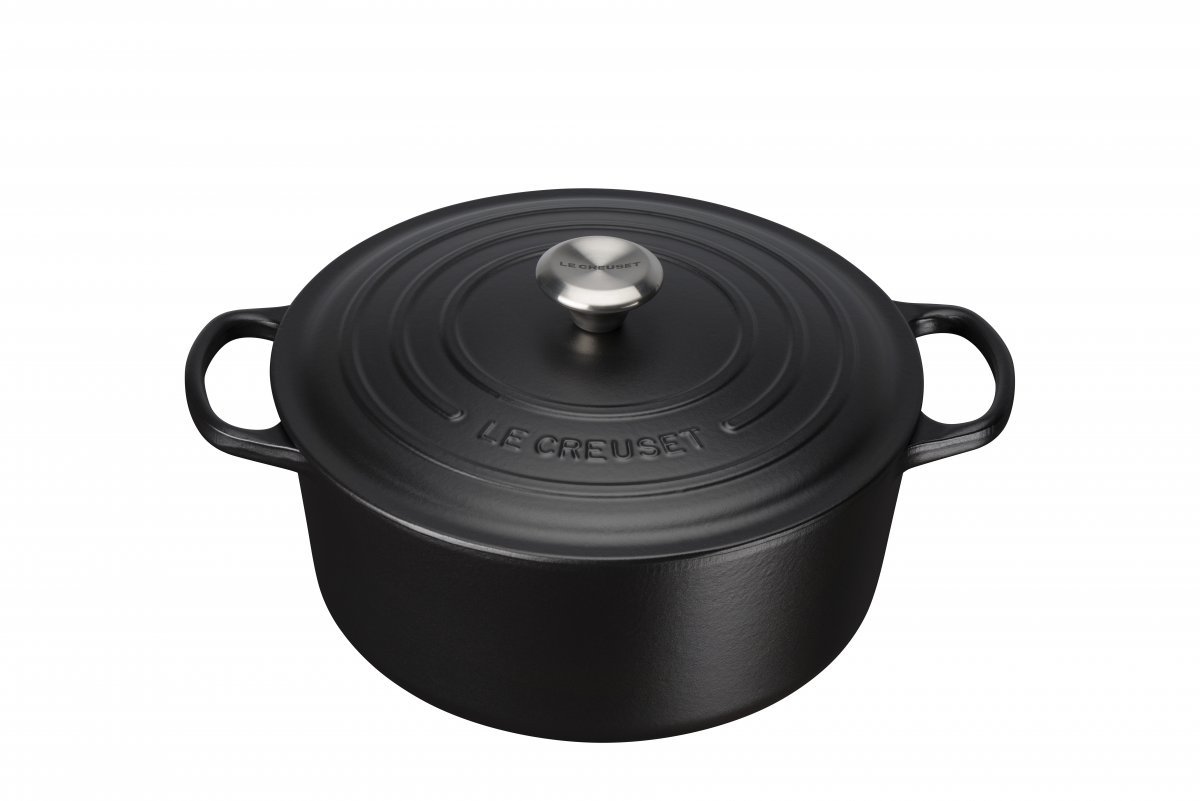 Le Creusetin 6,7 litrainen musta valurautainen pata, halkaisijaltaan 28 cm. Pata on osa Signature –sarjaa joka koostuu päivitetyistä valurautaisista tuotteista. Kädensijat ovat nyt suuremmat paremmalla otteella ja padan nuppi on tyylikäs ja teräksinen. Kansi on entistäkin tiiviimpi ja kestävämpi ja sen sisäpuolen emaloitu pinta on helppo pitää puhtaana. Valurauta on materiaalina lyömätön ja jakaa lämmön tasaisesti, pata sopiikin erinomaisesti haudutukseen ja keittojen sekä patojen laittamiseen. Padan voi nostaa suoraan liedeltä pöydälle, ruoka pysyy lämpimänä pitkään. Ajattomasti muotoiltu laadukas pata elinikäisellä takuulla on saatavilla eri värivaihtoehdoissa ja teräksisen nupin voi vaihtaa uuteen.