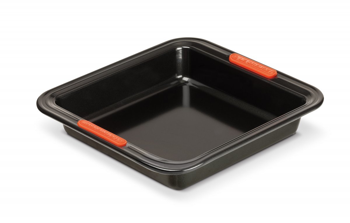 Le Creusetin nelikulmainen uunivuoka kooltaan 23 x 23 cm on varustettu Non-Stick -pinnoitteella, joten leivinpaperia tai rasvaa ei tarvitse käyttää. Vuoka on musta ja lämpöä kestävillä oransseilla silikonikahvoilla saat tukevan otteen vuoasta. Käytännöllinen vuoka on passeli esimerkiksi uunijuuresten, pannukakkujen ja gratiinien tekoon, sillä ruoka ei pala kiinni vuokaan ja saat tasaisen lopputuloksen aikaan. Vuoka on uuninkestävä aina 240 asteeseen saakka.