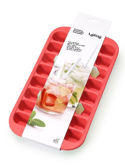 Jos pakastimessasi on tilaa vain yhdelle muotille, uudistettu Lékuén ””Gourmet Industrial”” on hyvä valinta – tästä reilunkokoisesta jääpalamuotista saat kerralla jopa 32 jääpalaa! Muotin koko on noin 335x180x33 mm (pituus,leveys ja korkeus) ja sen materiaali on kumia. Jääpalojen poistaminen joustavasta muotista onnistuu helposti ja nopeasti. Ainoastaan laitettavaksi pakastimeen tai jääkaapin pakastinlokeroon. Väri punainen.