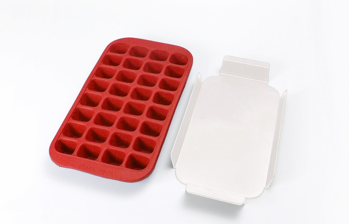Punainen jääpalamuotti, jolla teet jääpaloja helposti, sillä kannen ansiosta vesi ei valu joka paikkaan. Valmistaaksesi persoonallisia jääpaloja, lisää veteen hedelmiä tai marjoja ennen pakastamista.