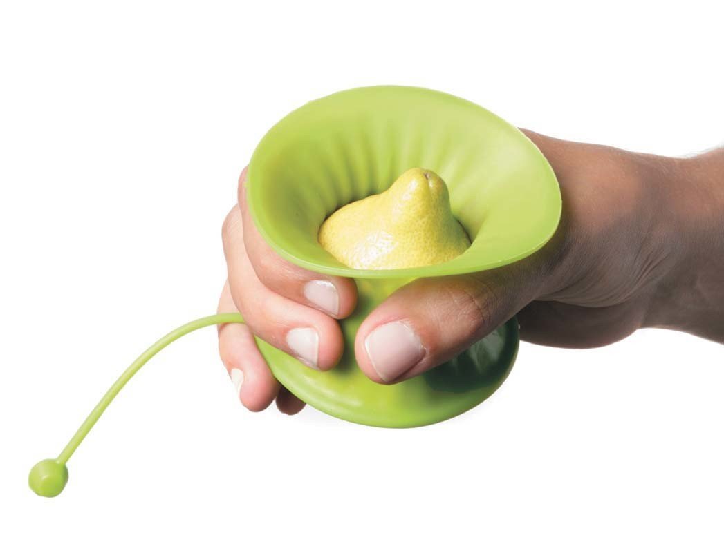 Sitruspuristin pysäyttää sitruunan pirskeet ja suuntaa ne oikeaan paikkaan eli lautaselle. Siemenet jäävät puristimeen, ja jos toinen puolikas sitruunasta jää käyttämättä voit sulkea korkin ja säilyttää sen jääkaapissa. Väri vihreä, pakkauksessa kaksi kappaletta. 100 % platinasilikonia