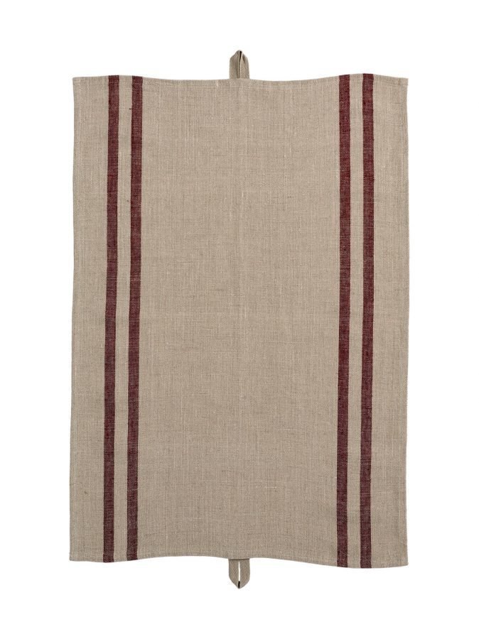 Pellavaisessa keittiöpyyhkeessä on sivuilla kaksi raitaa. Molemmissa päädyissä on ripustuslenkit. Materiaali on 100 % pellavaa. Konepesu 60 °C.13RID05700D30