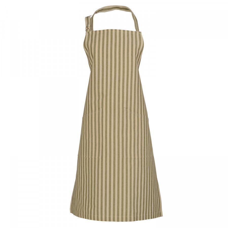 Esiliina klassisilla raidoilla ja pehmeillä väreillä. Esiliina on säädettävissä hihnalla ja siinä on kaksi taskua. Valmistettu 100% puuvillasta. Pesu 40 asteessa.