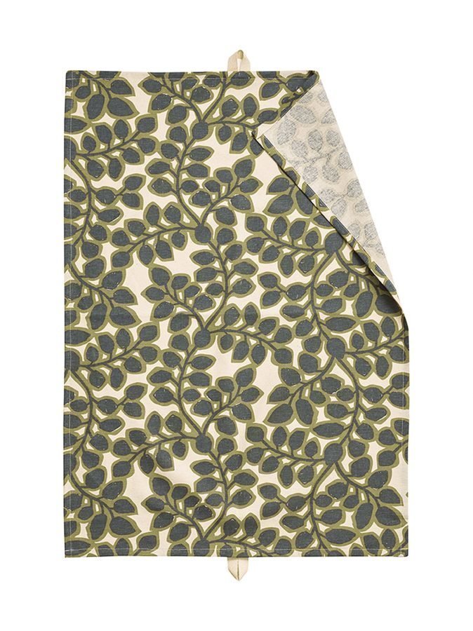 Puuvillakankaasta valmistettua keittiöpyyhettä koristaa Mathias Elovssonin suunnittelema eläväinen kuosi. Pyyhkeessä on lyhyellä sivulla ripustuslenkki.