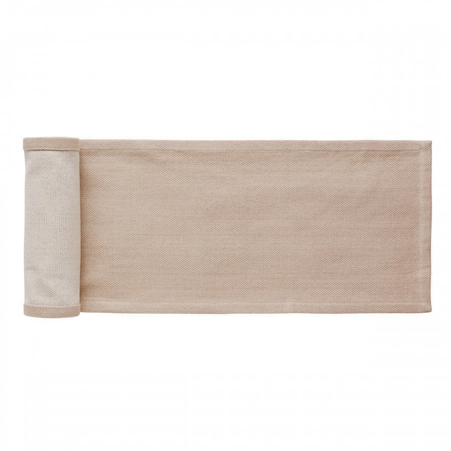 Yksivärinen kaitaiina puuvillaa. Koristeellinen ja suojaa samalla pöytää. Konepesu 40 asteessa.