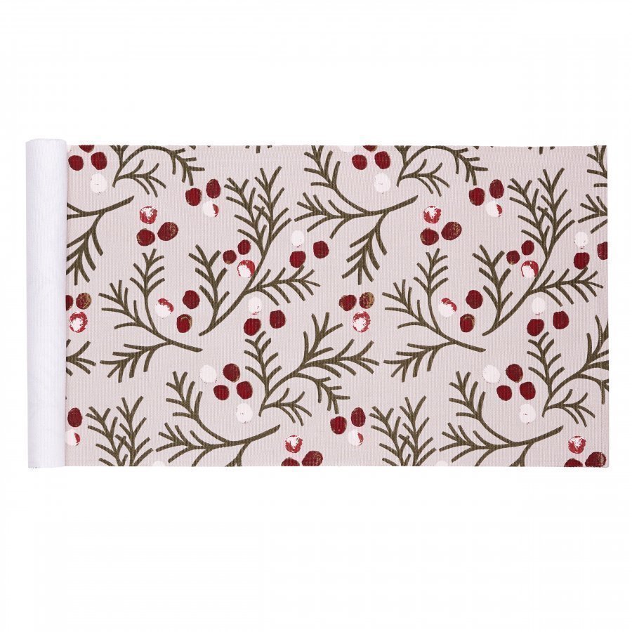 Kaitaliina, jossa on painettu marjakuvio. Suojaava ja koristeellinen. Konepesu 40 asteessa.