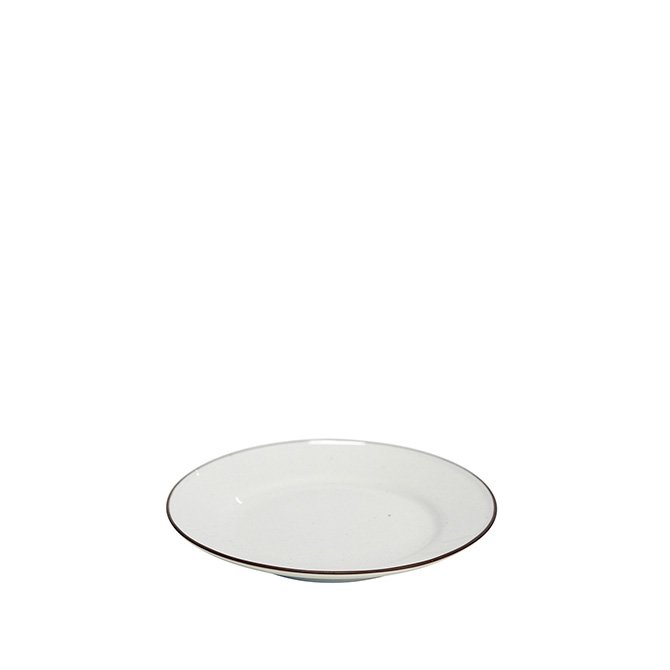 Maasälpäposliinista valmistettu lautanen, jonka halkaisija on 16 cm. Lautasen reuna on käsinmaalattu ruskealla, mikä antaa sille elävän ilmeen. Asetti löytyy valikoimasta myös sinireunaisena.