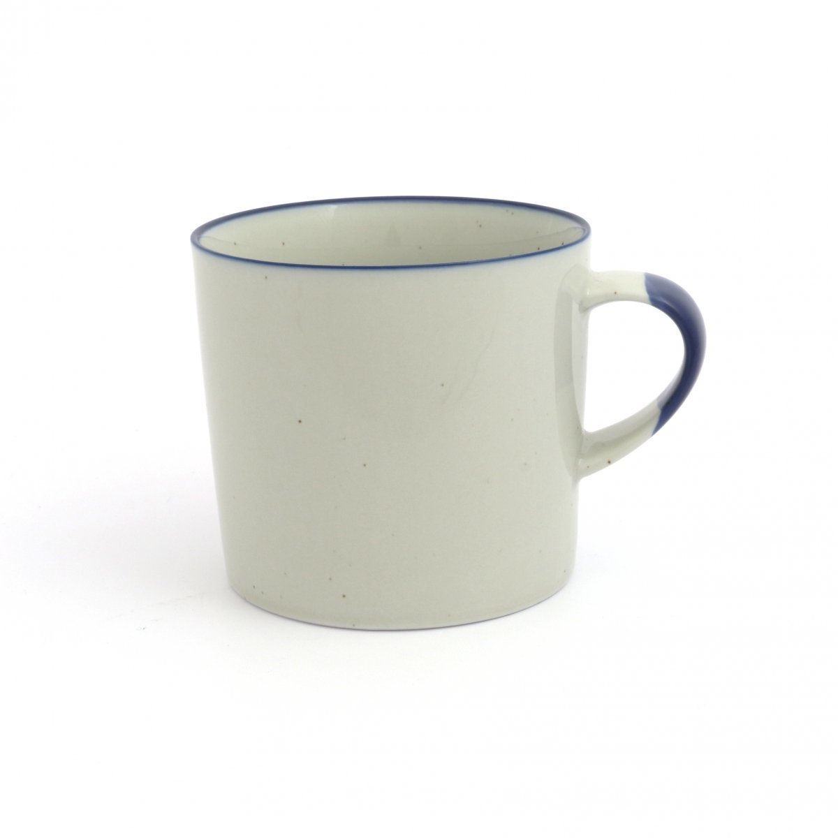 Tyylikäs muki Månses Design -tuotemerkiltä. Muki on valmistettu maasälpäposliinista ja sen vetoisuus on 35 cl. Mukin reuna on käsinmaalattu sinisellä, mikä antaa sille elävän ilmeen. Astioita löytyy myös ruskeareunaisena.