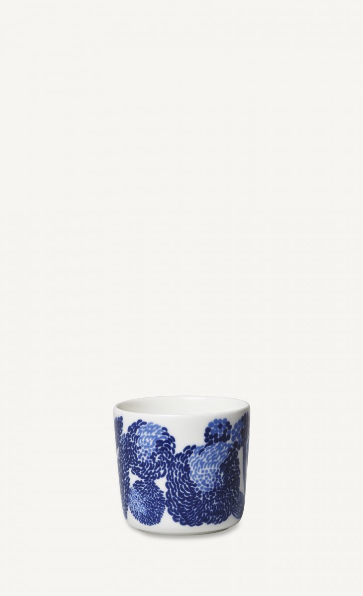 Marimekko Mynsteri -kahvikupissa pitsikukkia. Konepesun kestävää keramiikkaa. Valko-sininen. Ostoksille!